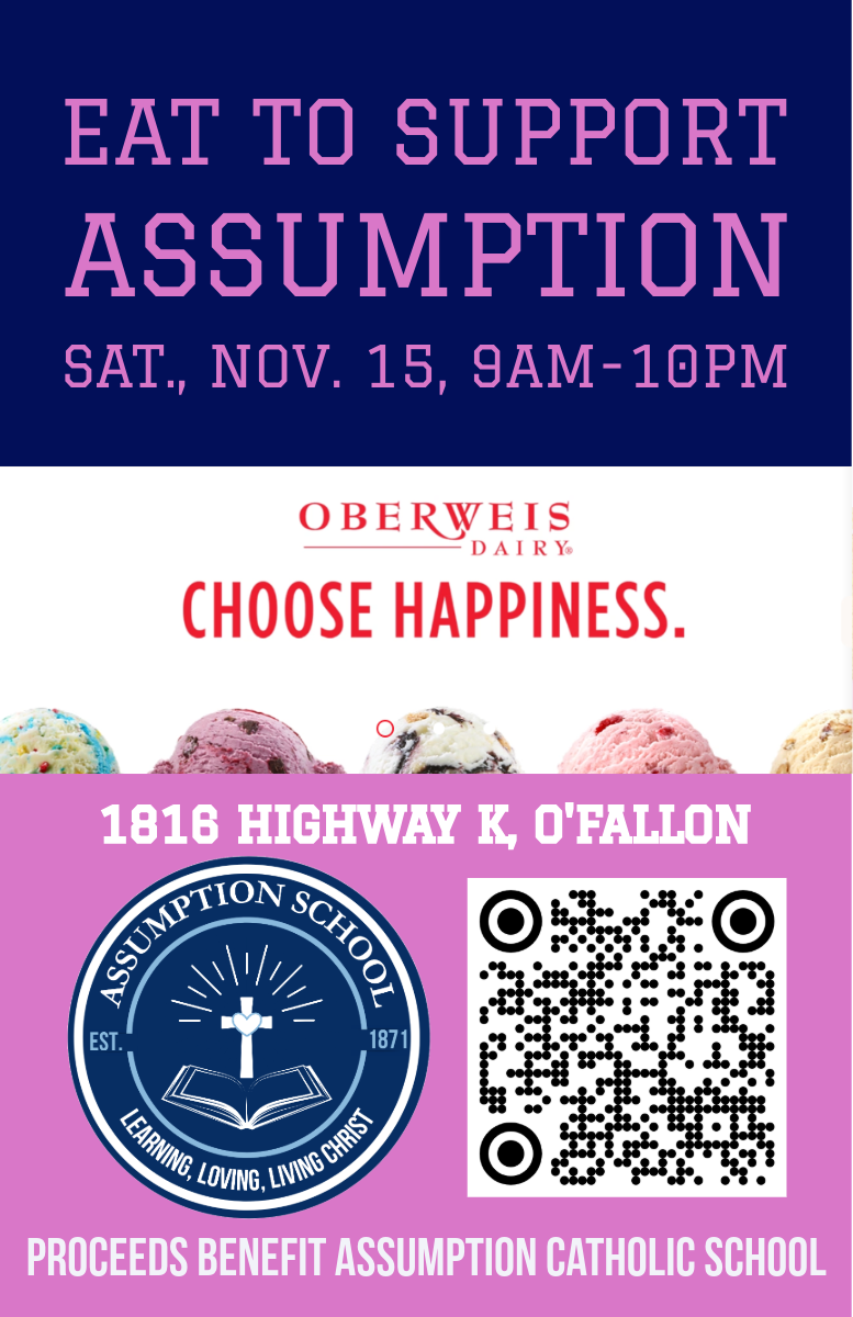 Nov. 15 is Oberwies Dining for Dollars event and Assumption receives 20% of food sales this day! Oberweis is located at 1816 Highway K in O'Fallon.