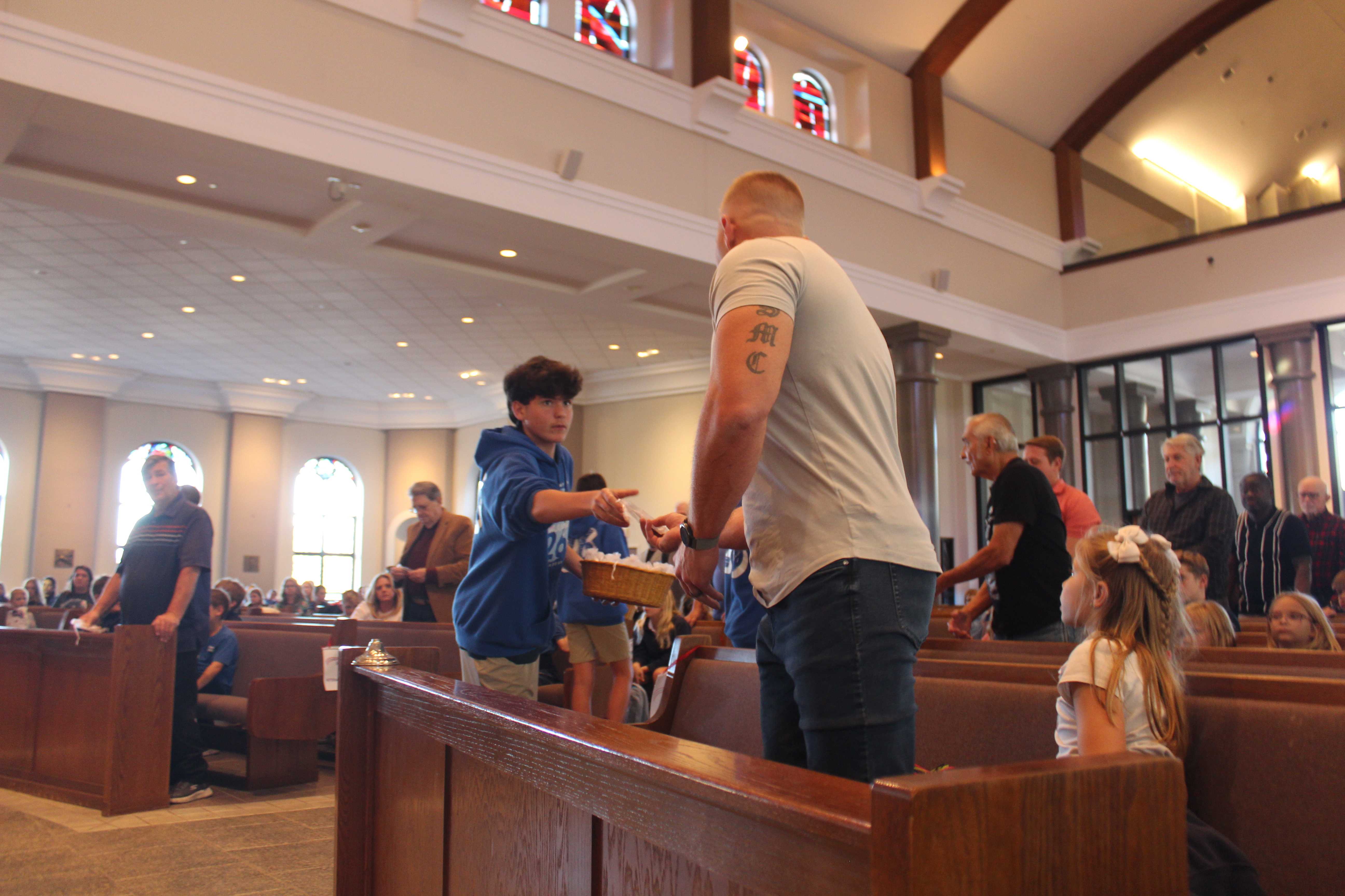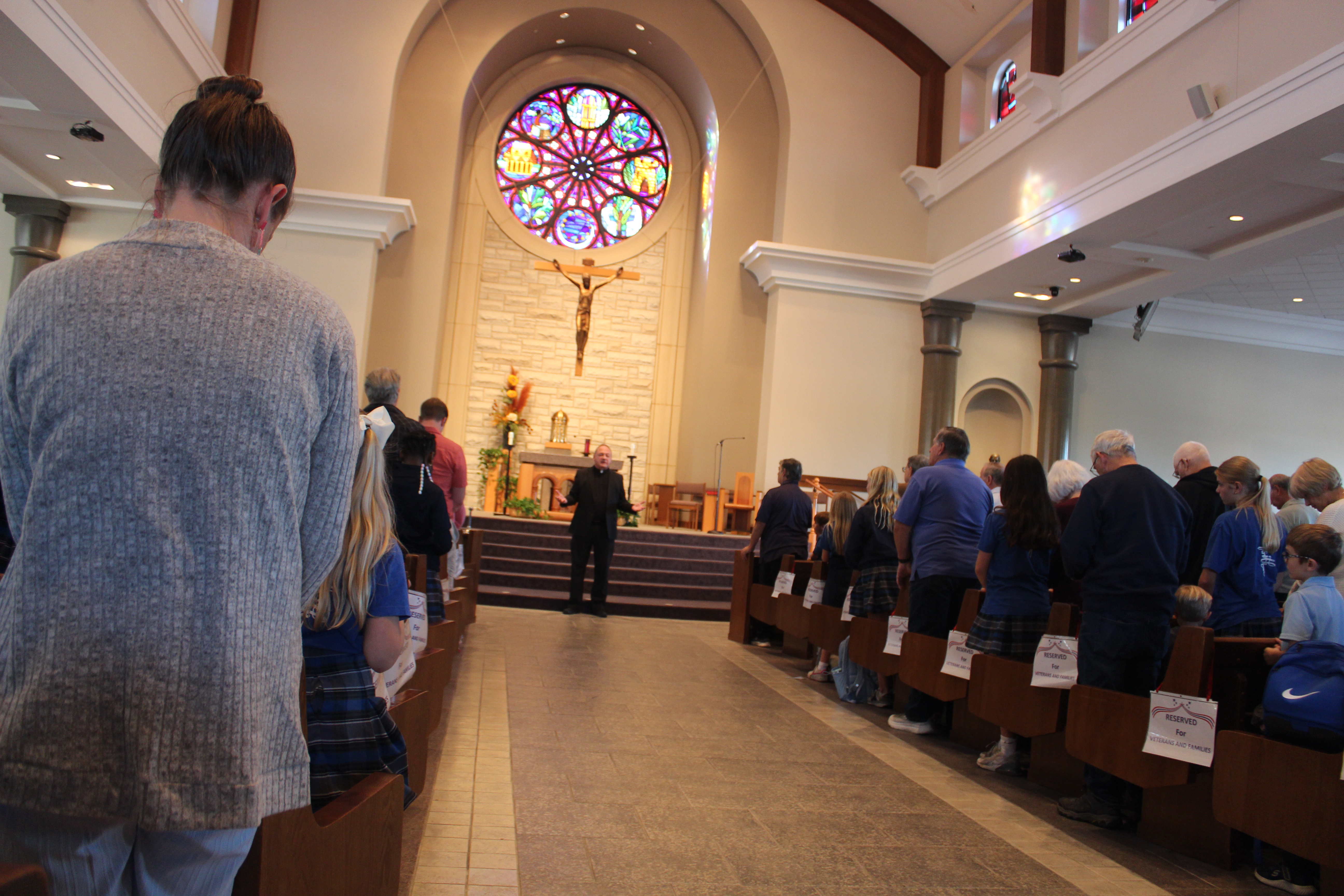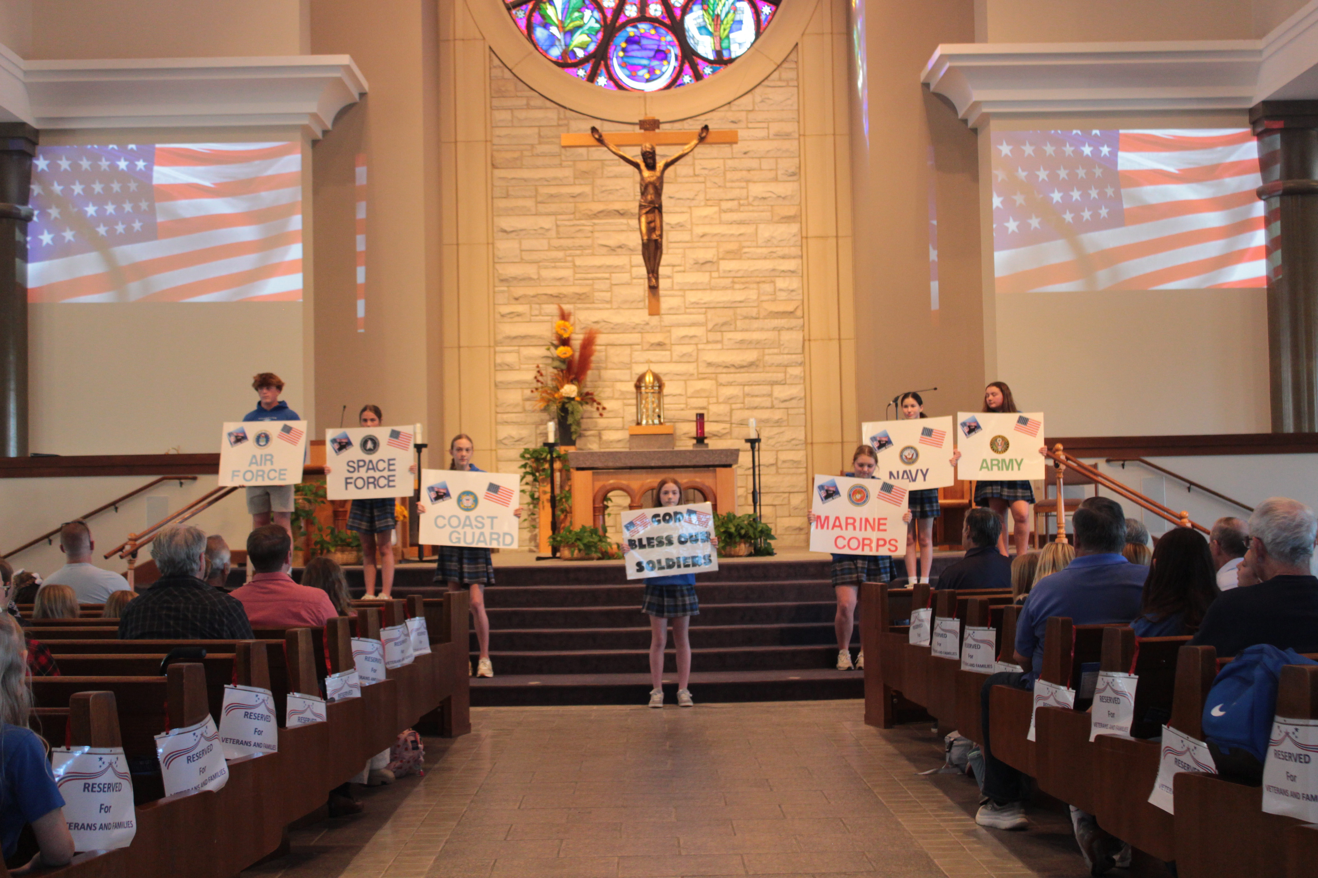 Led by the 8th-grade class, on Friday, Nov. 7, the students of Assumption Catholic School came together in faith and gratitude to honor the courageous men and women who have selflessly served our nation during a Veterans Prayer Service at Assumption of the Blessed Virgin Mary Church. Veterans of our school community were invited to wear their uniforms and join us in this sacred gathering, followed by a cupcake reception for all.