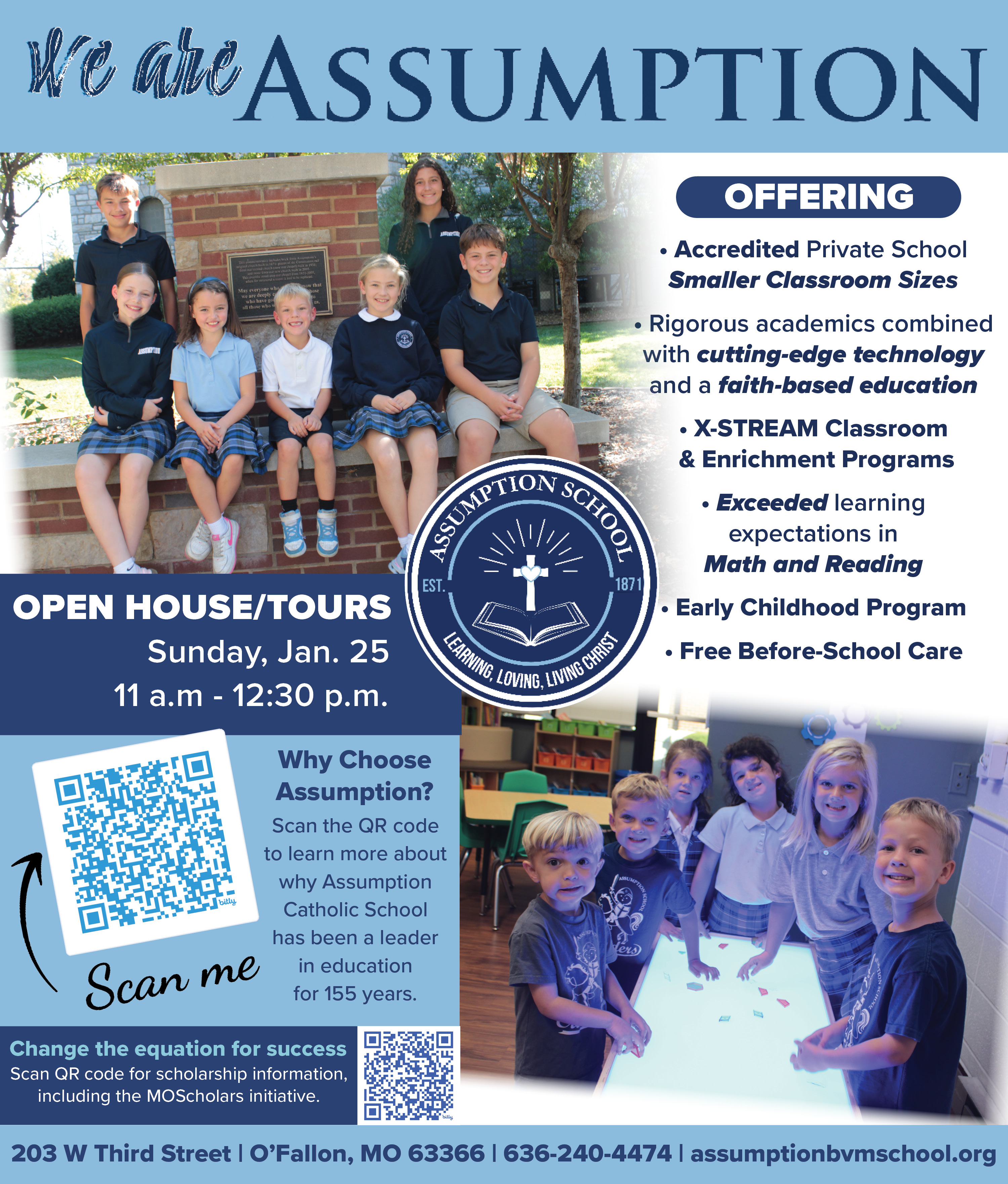 CLICK HERE to learn more about why Assumption Catholic School has been a leader in education for over 154 years or contact us at 636-240-4474.